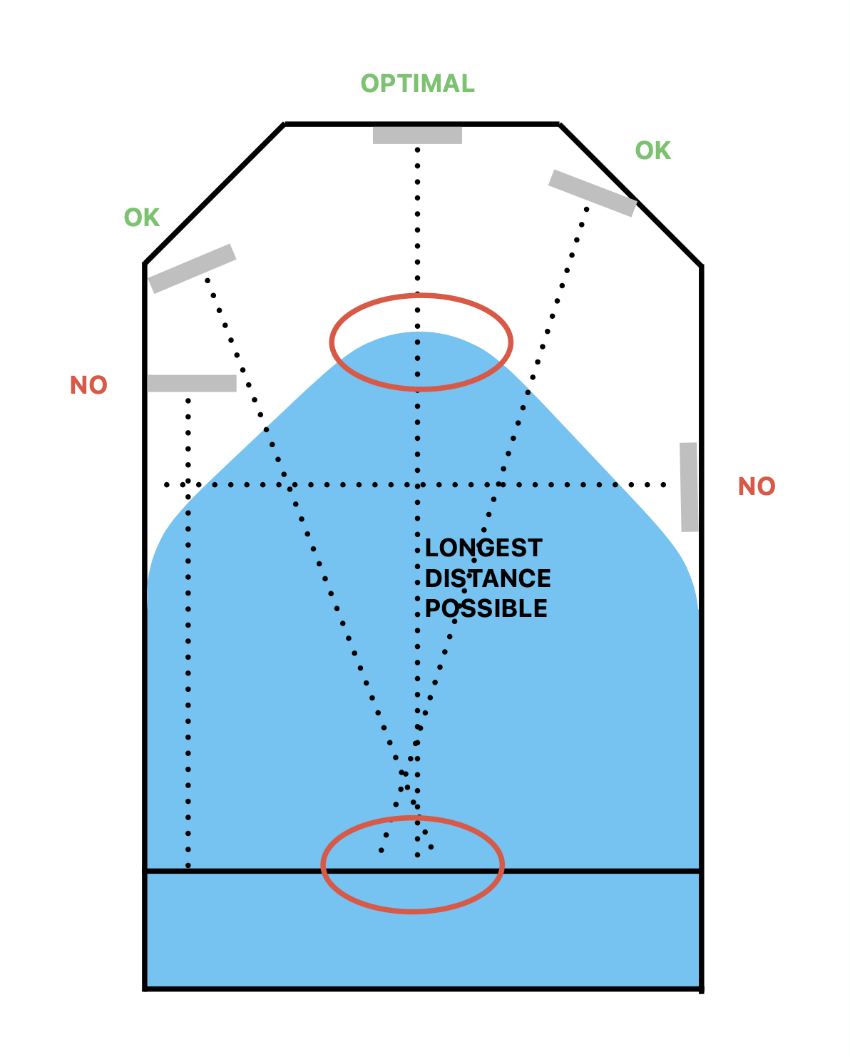 - Sensoren placeres, så den måler længst muligt ned mod bunden.