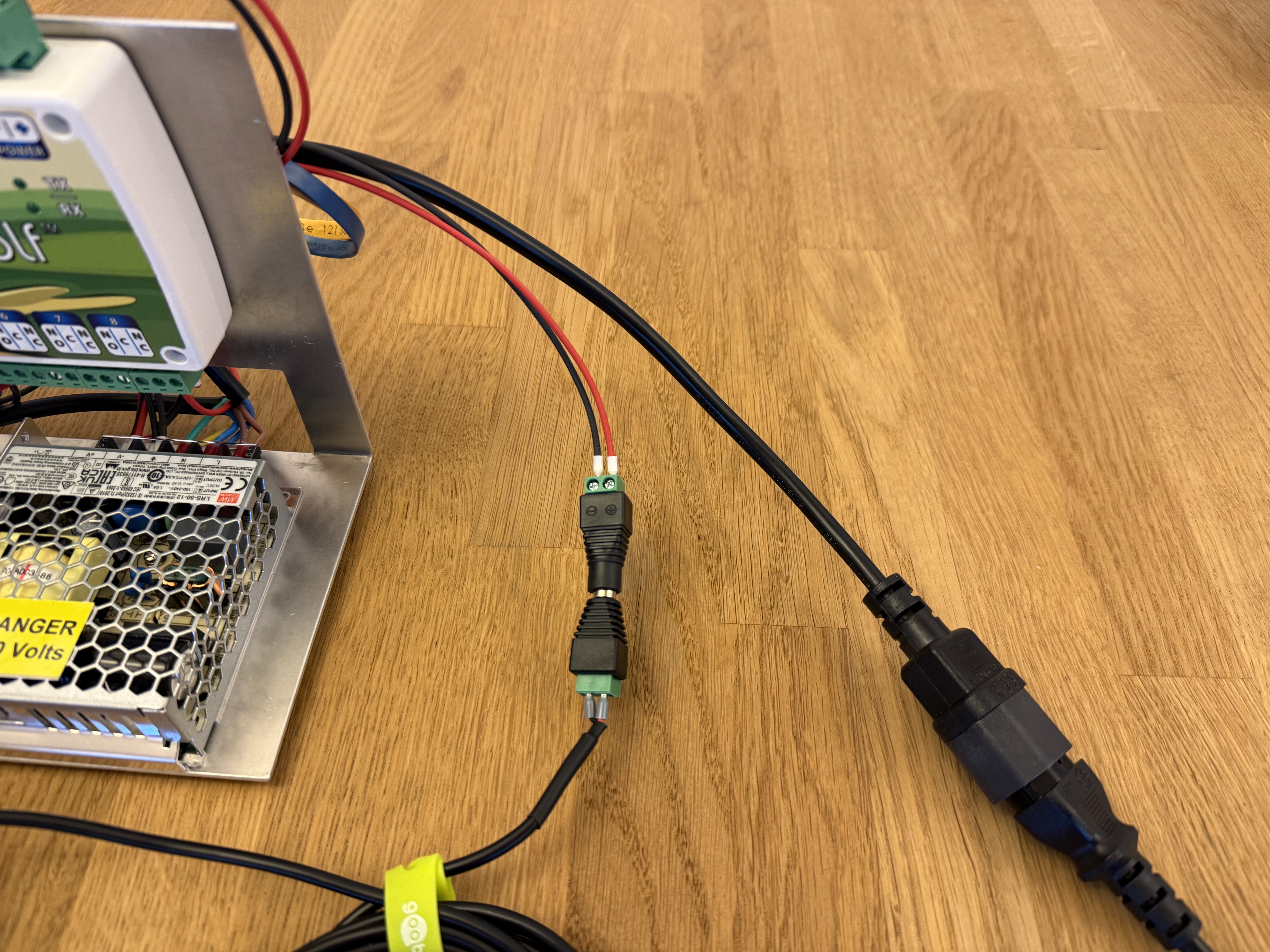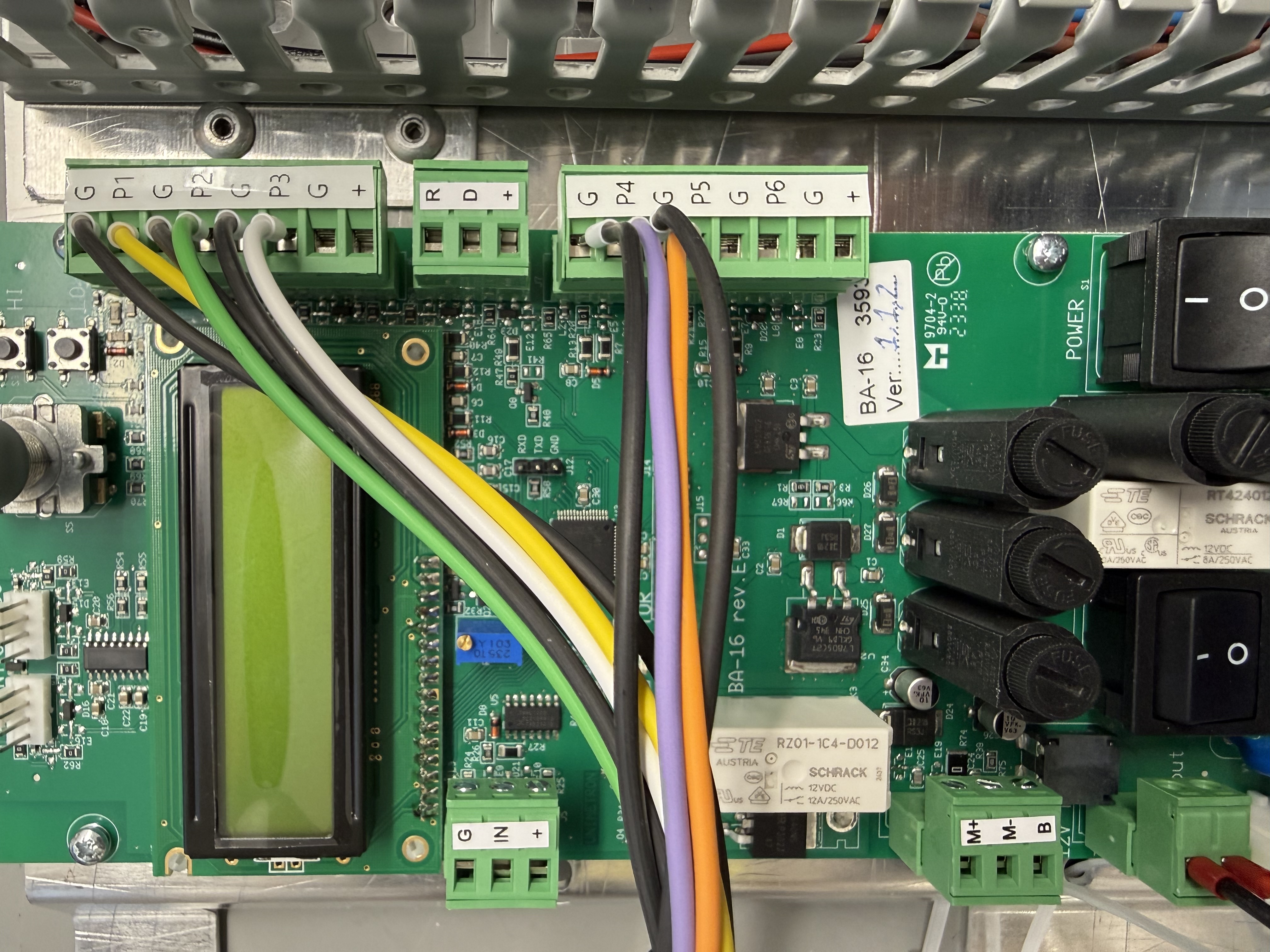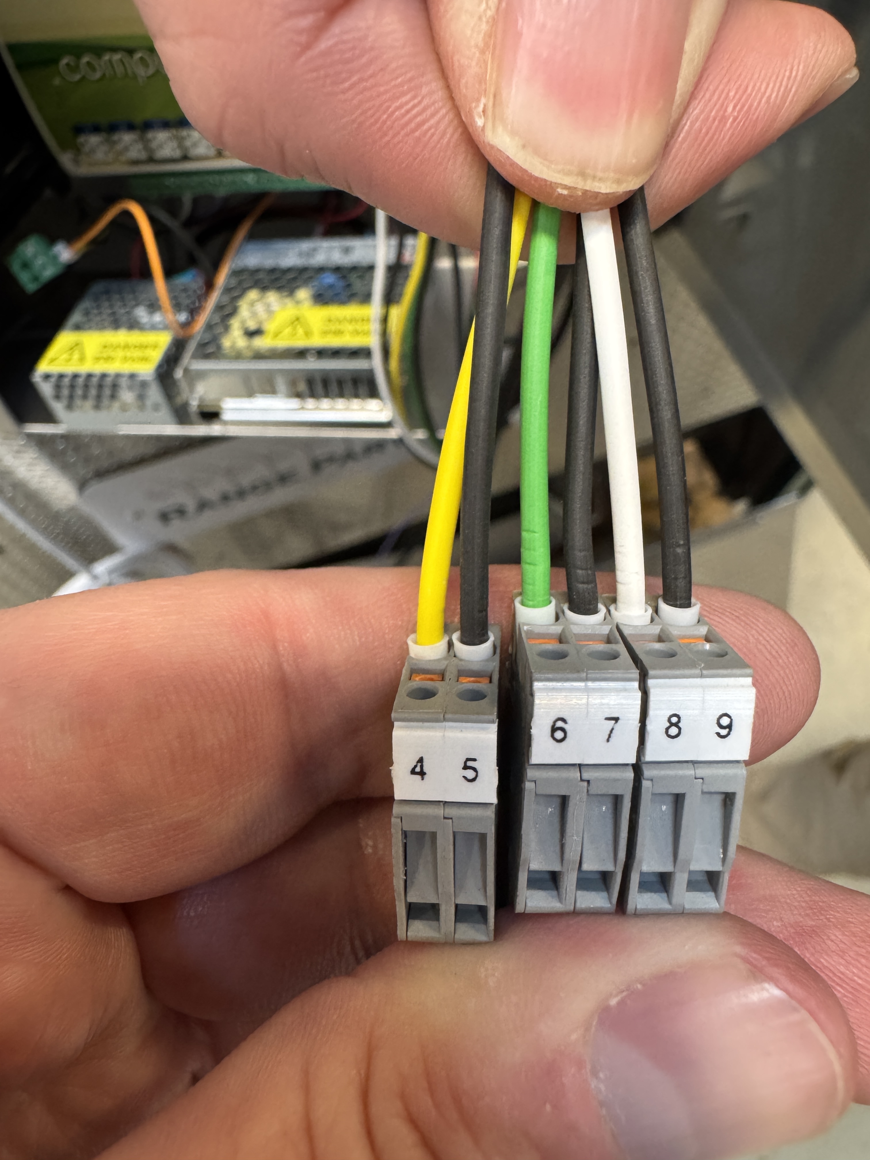 Disse benytter grønne Phoenix stik som forbindelse til et printkort i maskinen, og vi leverer vores elektronik med disse stik installeret. Afinstaller de eksisterende stik blot ved at hive dem ud, og forbind stikkene som vist på billedet.