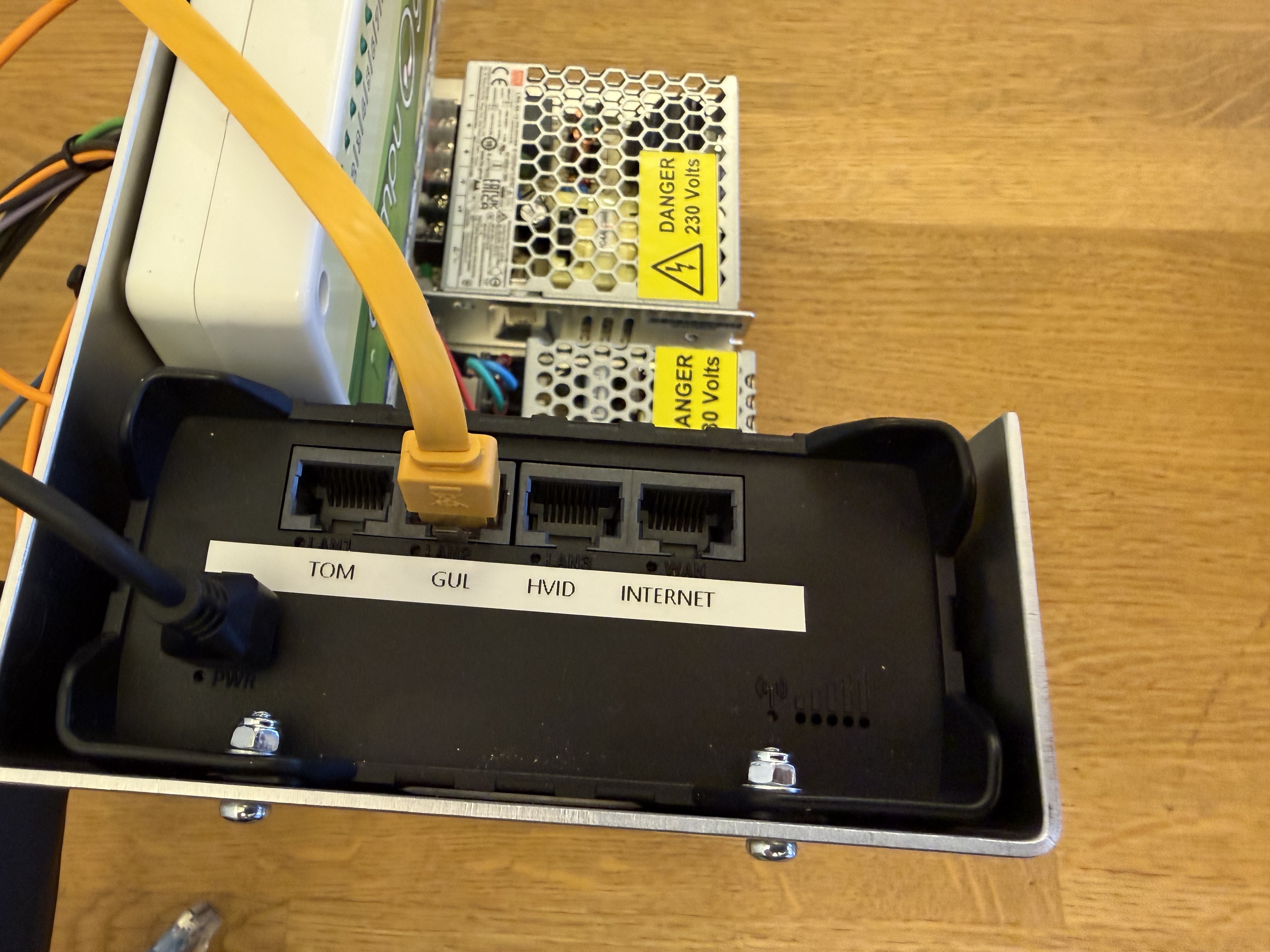 Der skal som udgangspunkt være kablet internet frem til rummet med elektronikken. Internetkablet sættes i modemmet på toppen, i det stik der er mærket "Internet" / "WAN".