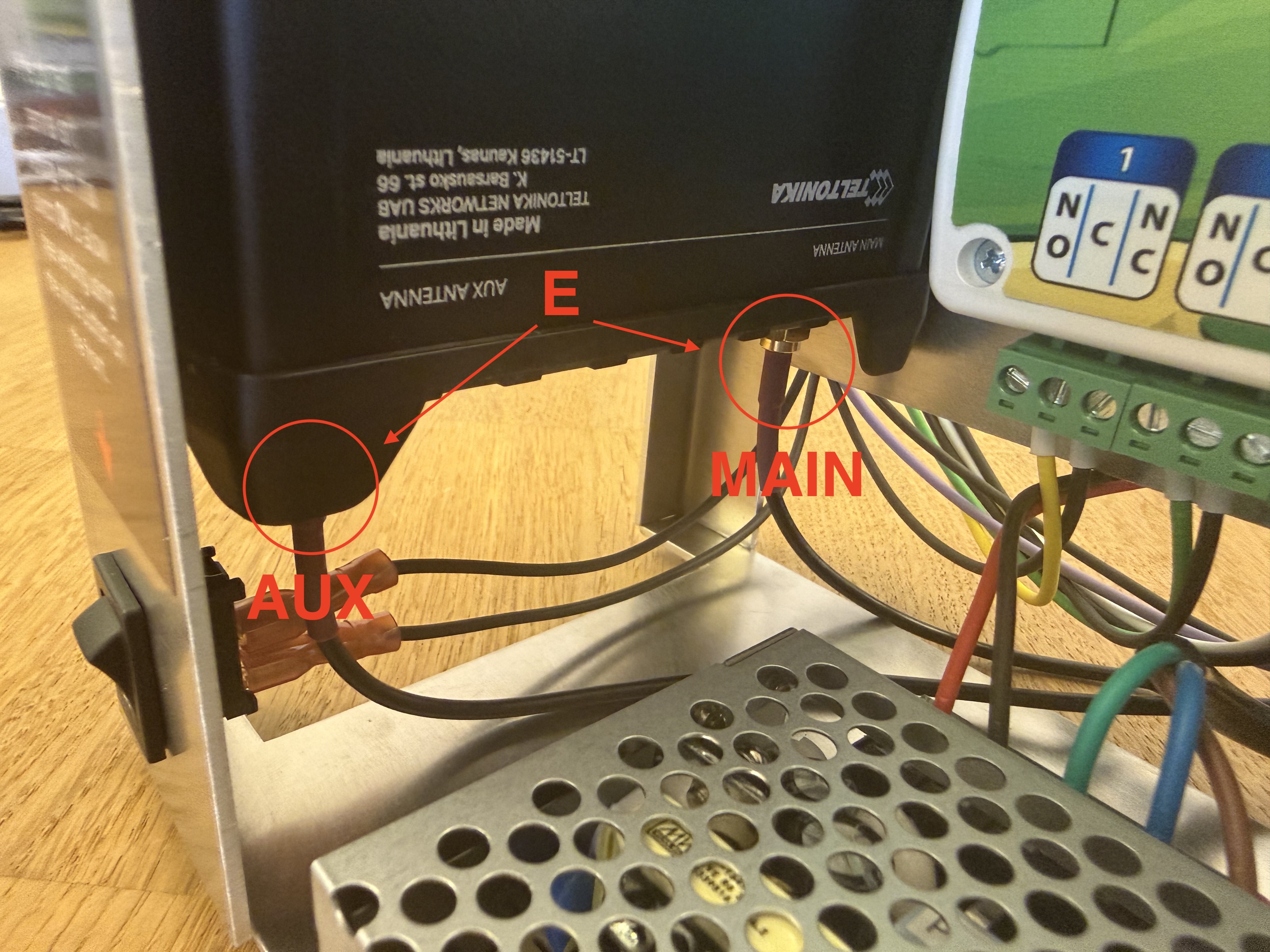 - De to antennekabler skrues med fingrene på modemmet, bemærk at AUX og MAIN kablerne monteres korrekt