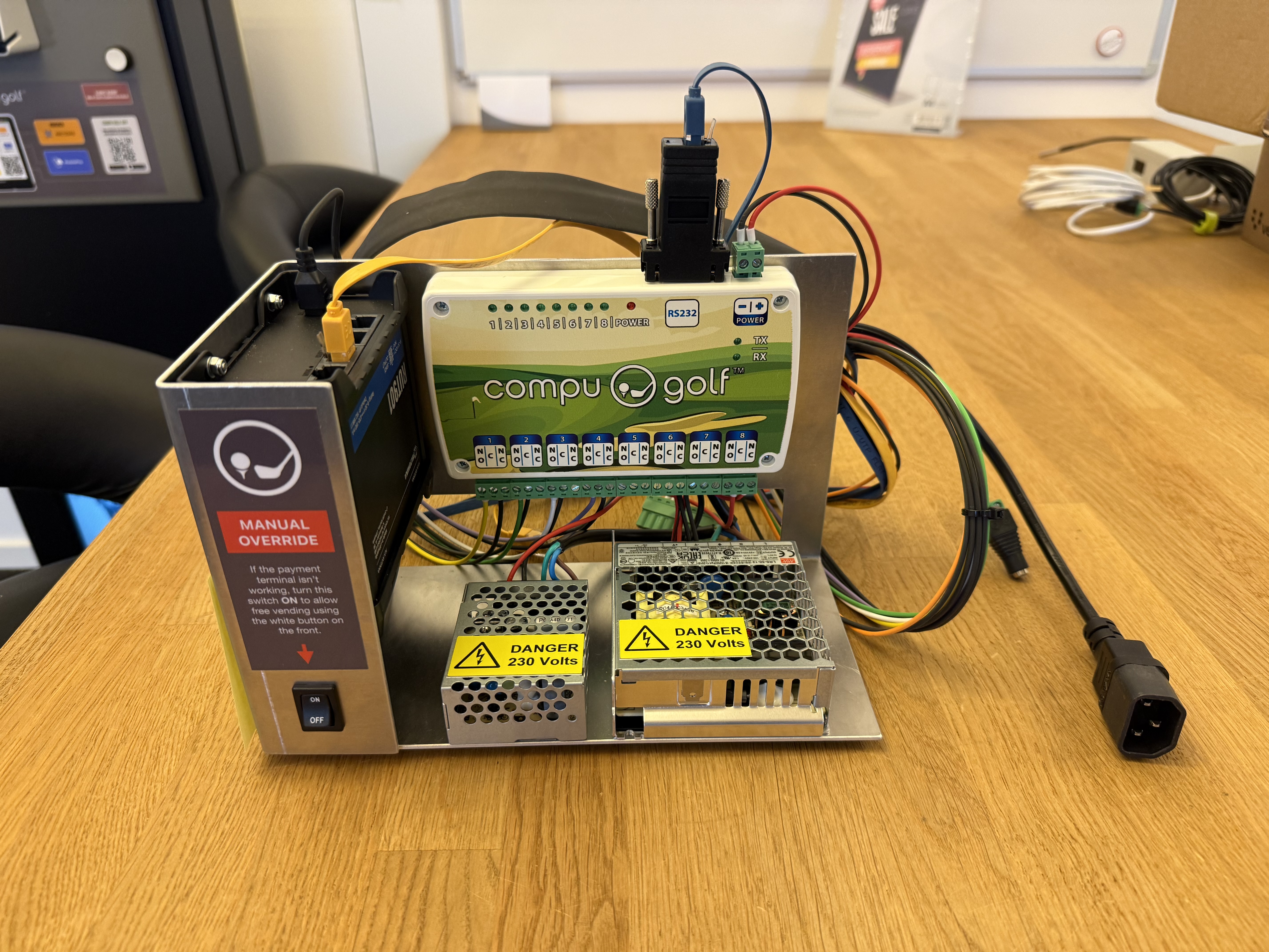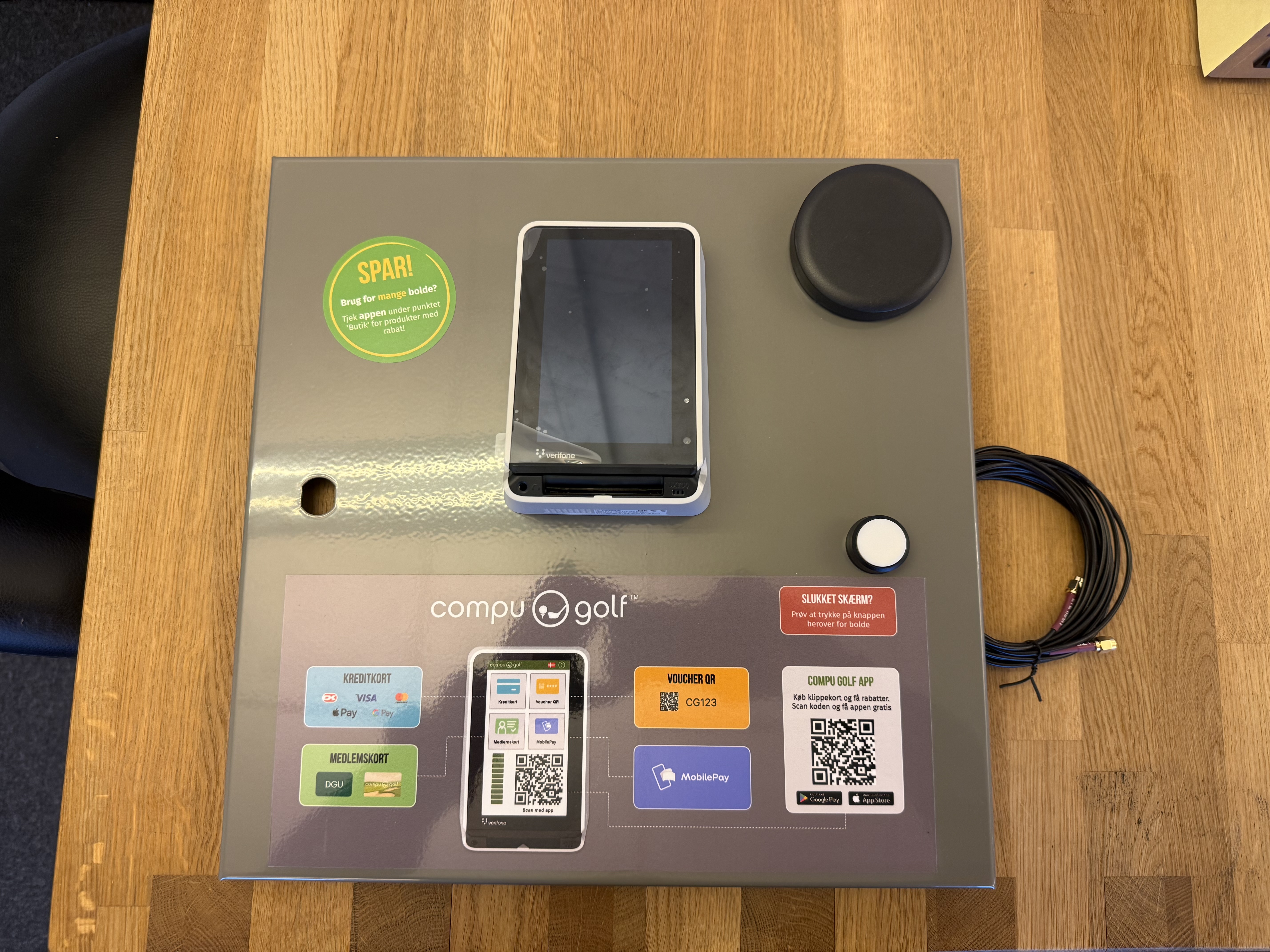Du modtager din driving range installation i én samlet kasse. Alt udstyret i kassen er på forhånd konfigureret, og softwaren er tilpasset til jer. Har I oplyst os om ønskede produkter, priser, åben- og lukketider, alarmer m.m. er dette også allerede konfigureret, når du modtager udstyret. Det skal med andre ord i de fleste tilfælde blot tilsluttes fysisk, for at I kan komme i gang med betalinger.